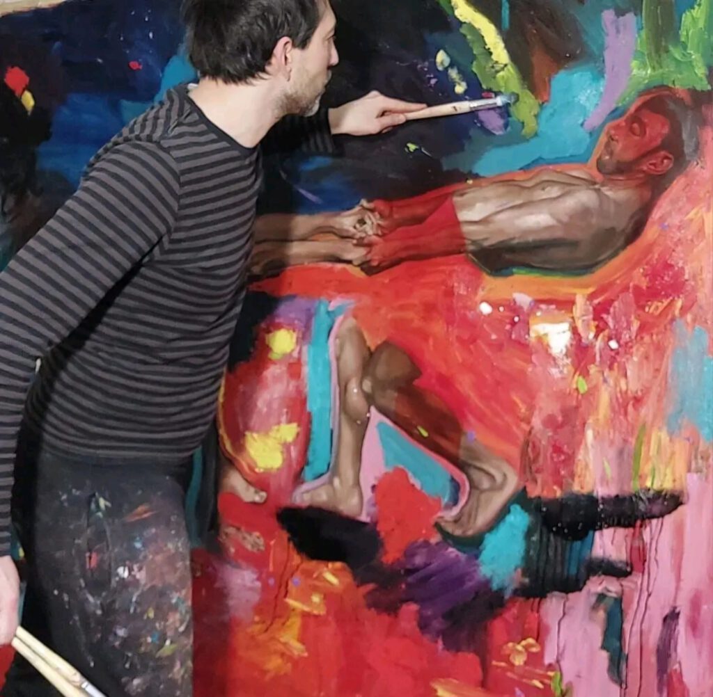 My practice unfolds at the intersection of painting and writing, conceived as interdependent components of a single research process. I often begin with staged photographs that I produce myself, using the body as a device to investigate tensions between the individual and historical structures. These images are later transformed through painting, where gesture and composition reveal dynamics of vulnerability, conflict, and ambivalence.