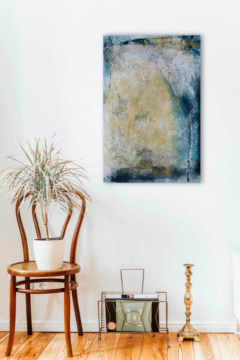 Die vielschichtige, aufgebrochene Oberfläche wirkt wie gelebte Zeit. Zwischen Schwere und Licht entsteht ein Spannungsraum. Kein fertiger Weg – sondern eine Schwelle. Genau hier beginnt die Brücke.