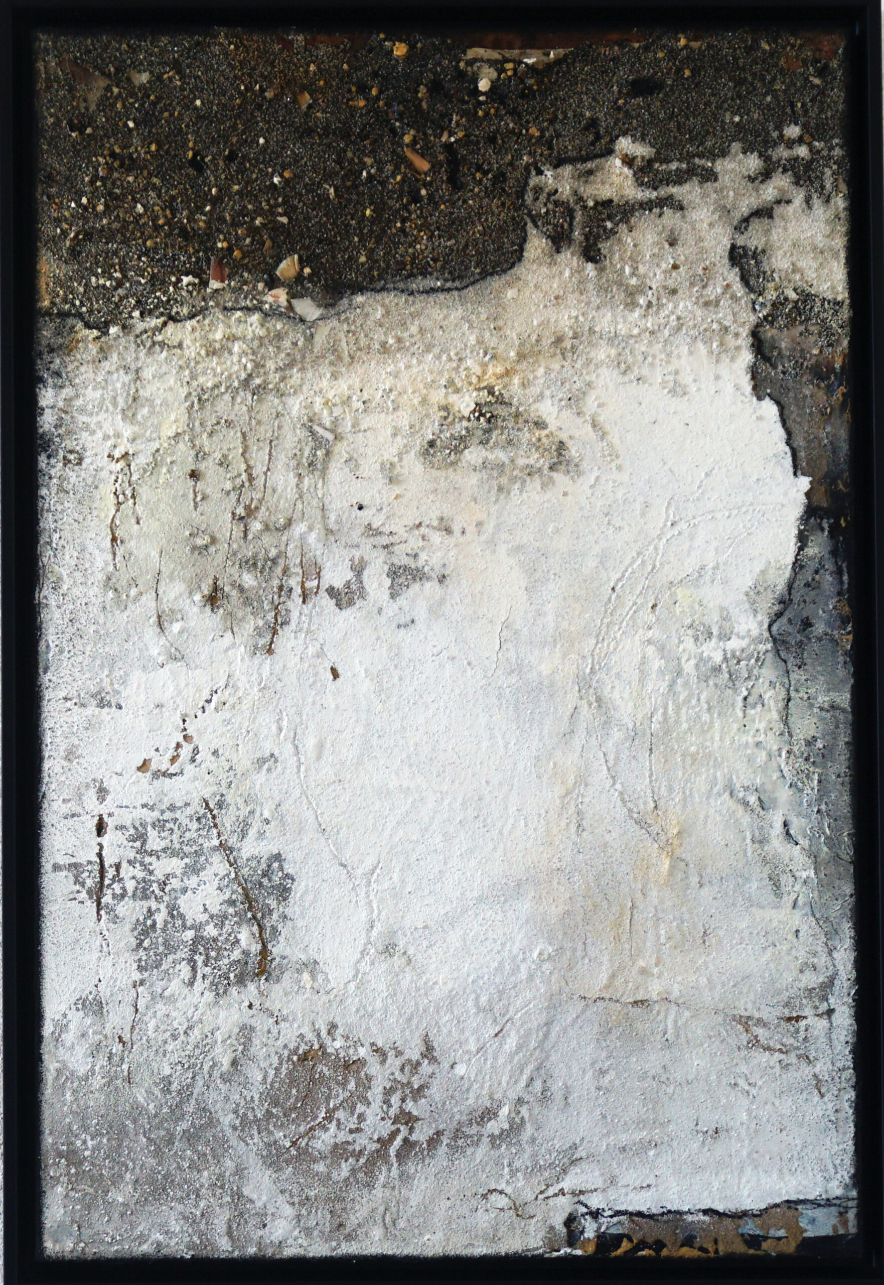 | Material | Lehm, Sand, Erde von Montescudaio, Spitzerreste, Acryl auf Leinwand im Schattenfugenrahmen |