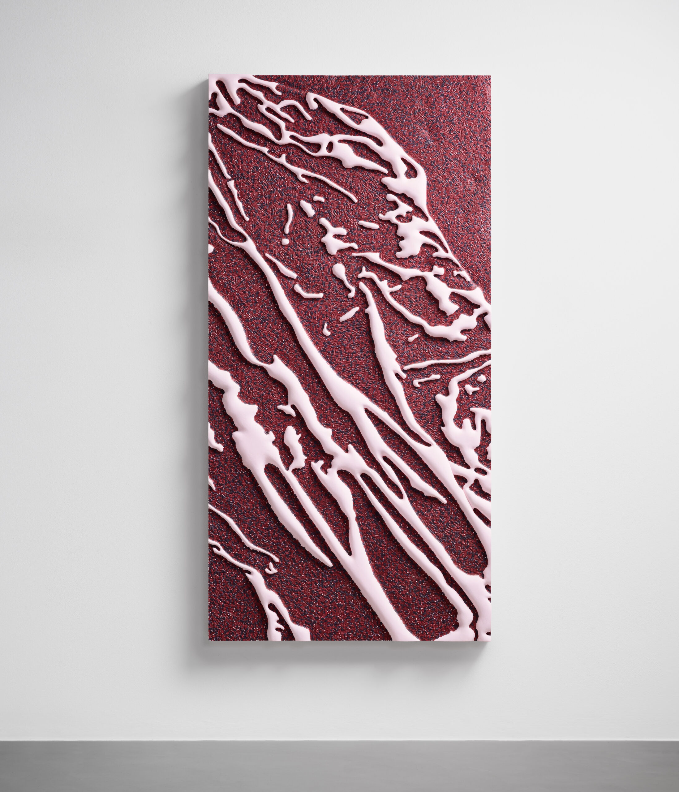 Ein Relief aus Holz und Acryl, das flüchtige Spuren festhält – Schönheit im Zufall, eingefroren im Moment.