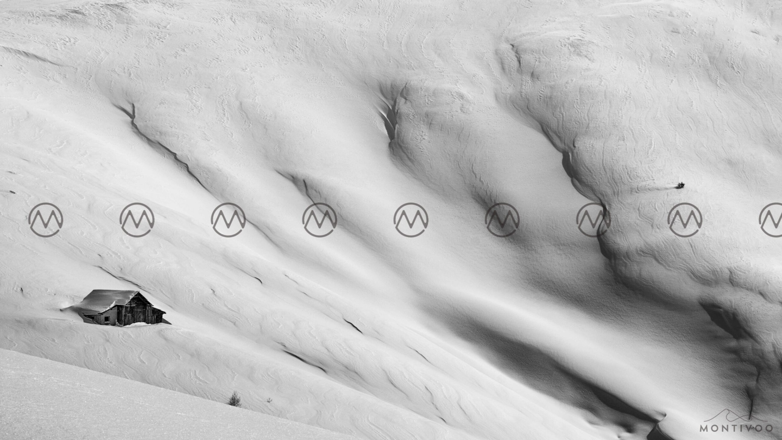 Am Jëuf de Sela (Sellajoch) eingefangen, zeigt Werner Dejori eine minimalistische Winterlandschaft, die durch ihre fast abstrakte Ruhe besticht. Die weichen Linien der Schneehänge wirken wie gemalt, nur unterbrochen von einer einsamen Hütte – stiller Zeuge der Weite. Die Komposition lebt von der Reduktion: Licht, Schatten und Struktur verschmelzen zu einer meditativen Szenerie, die die Essenz der Dolomiten verdichtet. Die Schwarz-Weiß-Umsetzung auf gebürstetem Aluminium verstärkt die skulpturale Wirkung dieser poetischen Momentaufnahme.