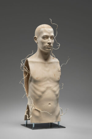 Ein Torso voller Spannung: Äußere Präsenz trifft auf innere Leere, durchzogen von feinen Linien des Zerbrechlichen.